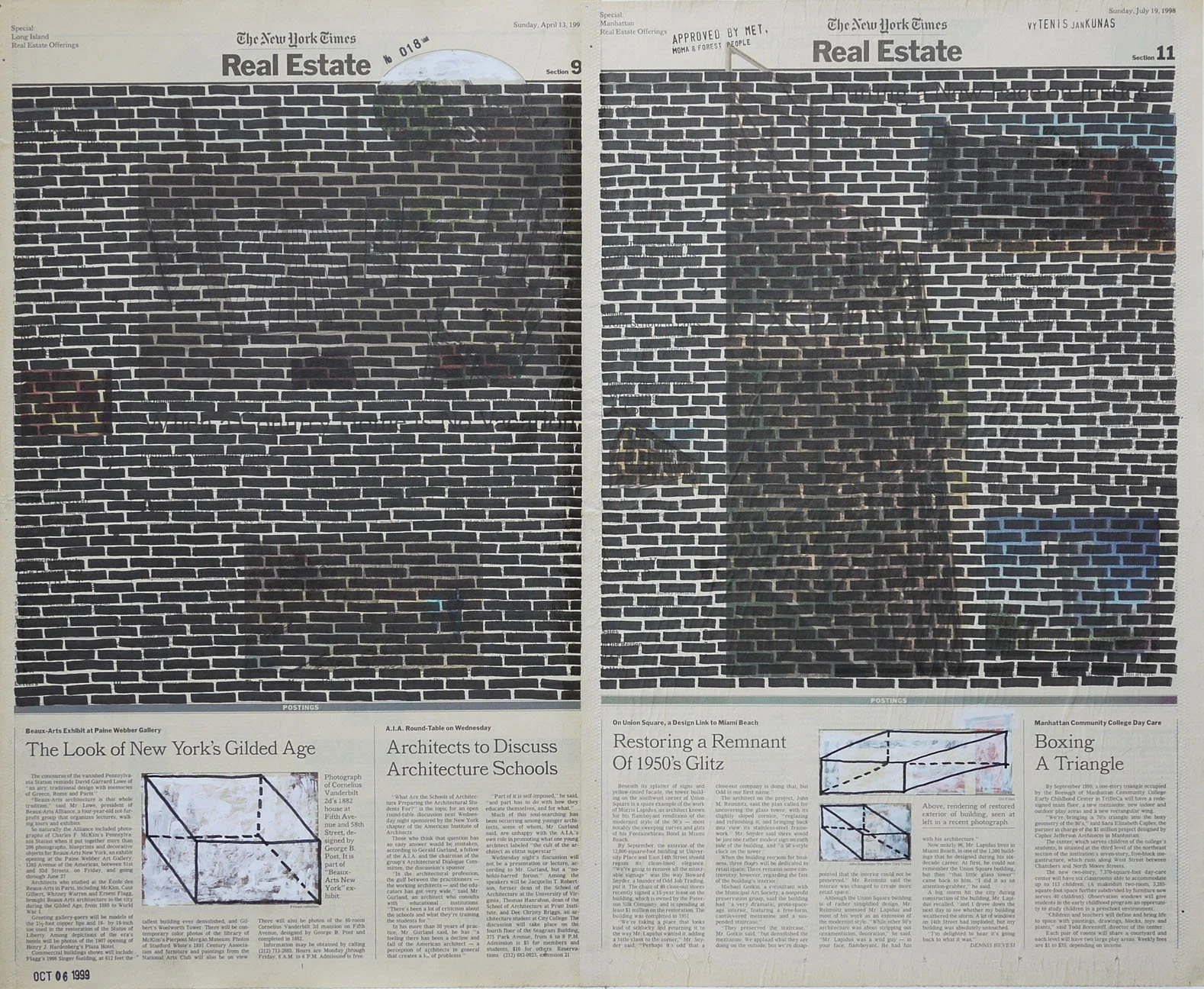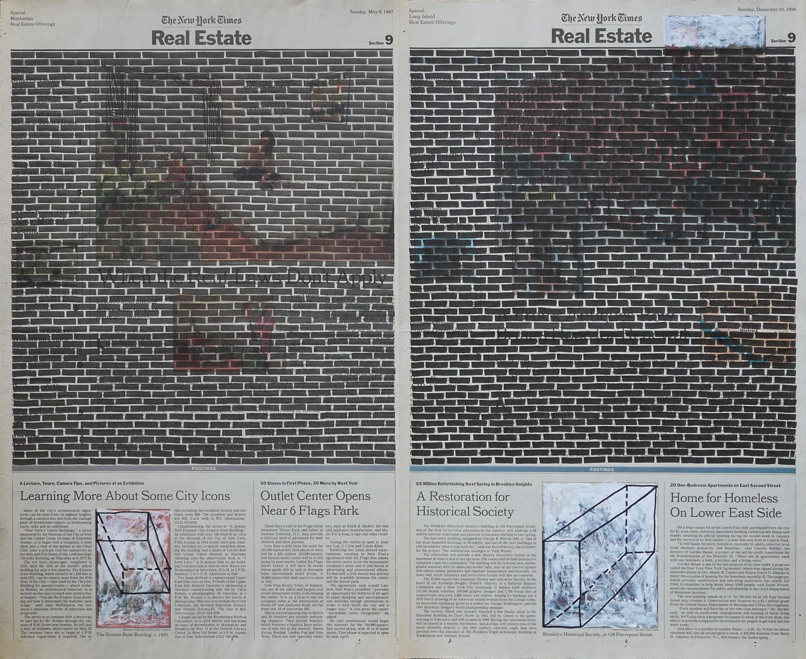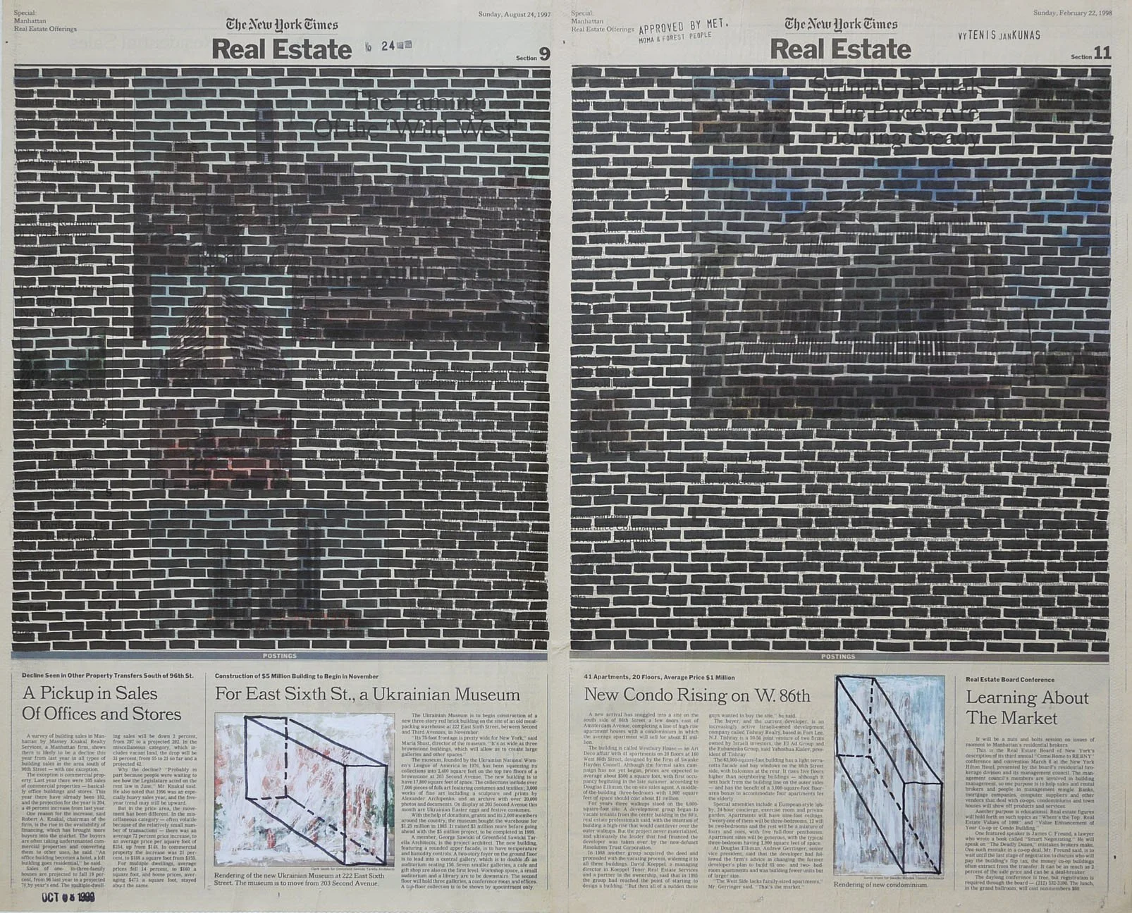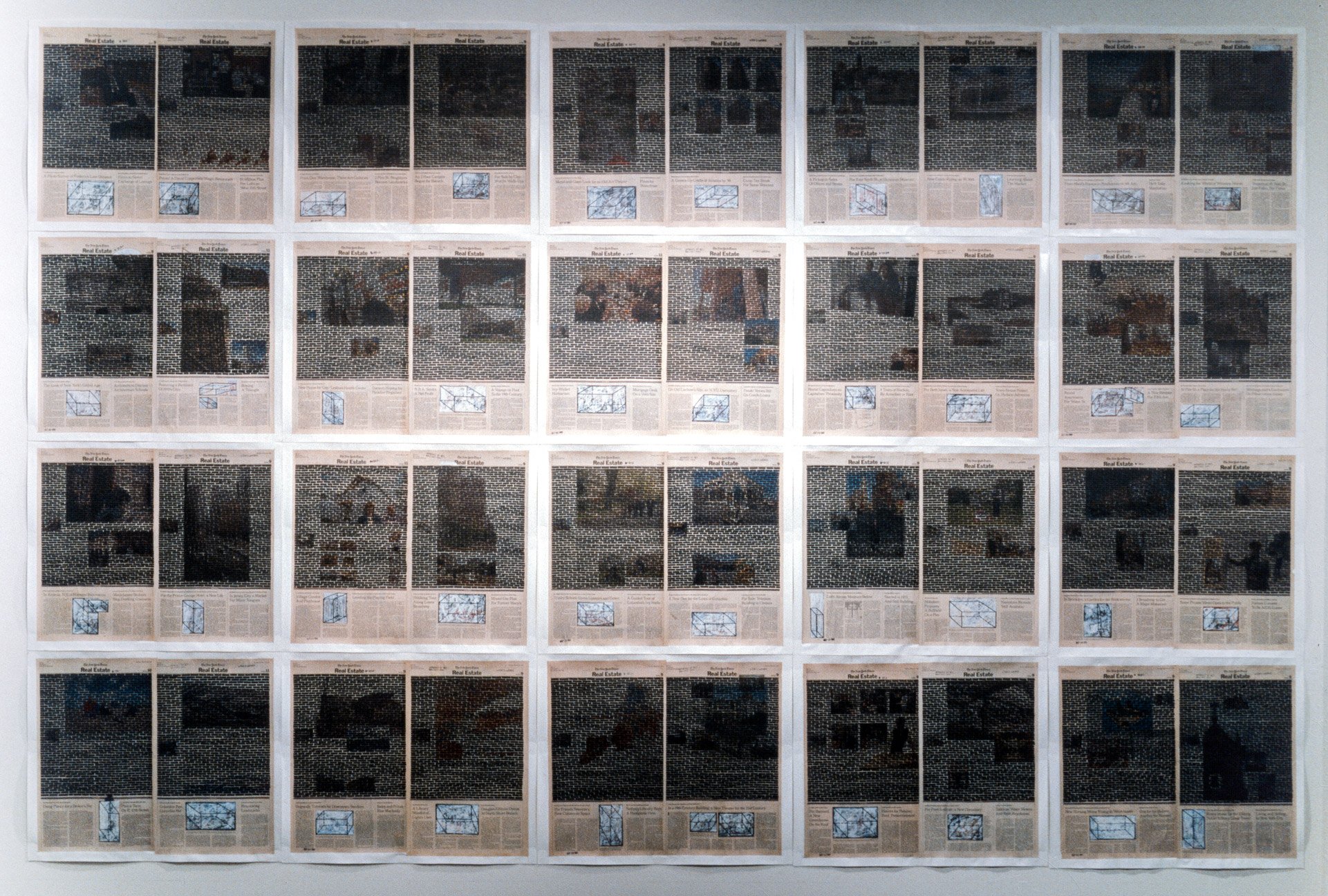 Real Estate, 1999. Permanent markers and correction fluid on newspaper mounted on canvas. It was shown at the Buying Time - Nourishing Excellence exhibition at Sotheby’s New Galleries in NYC.