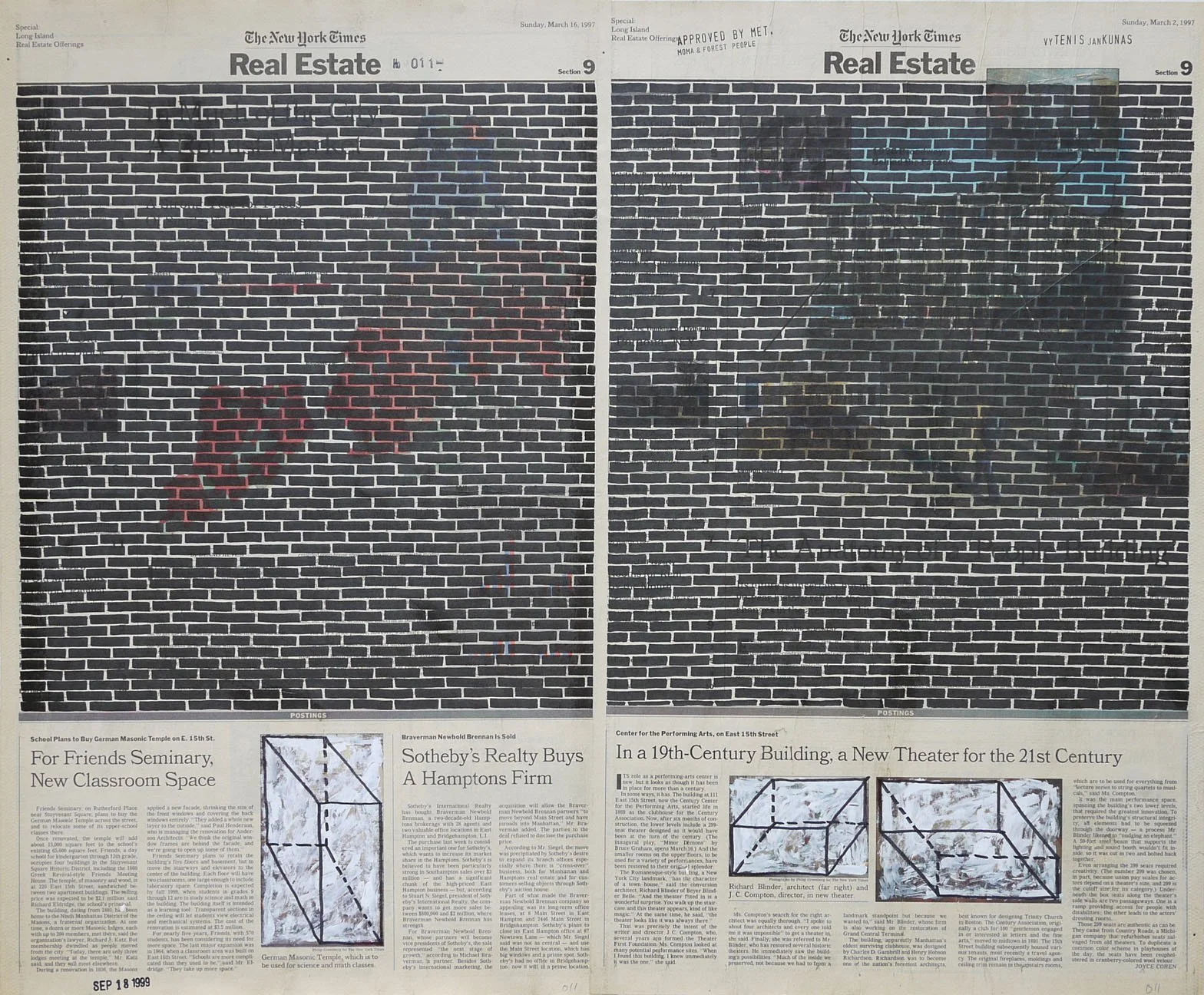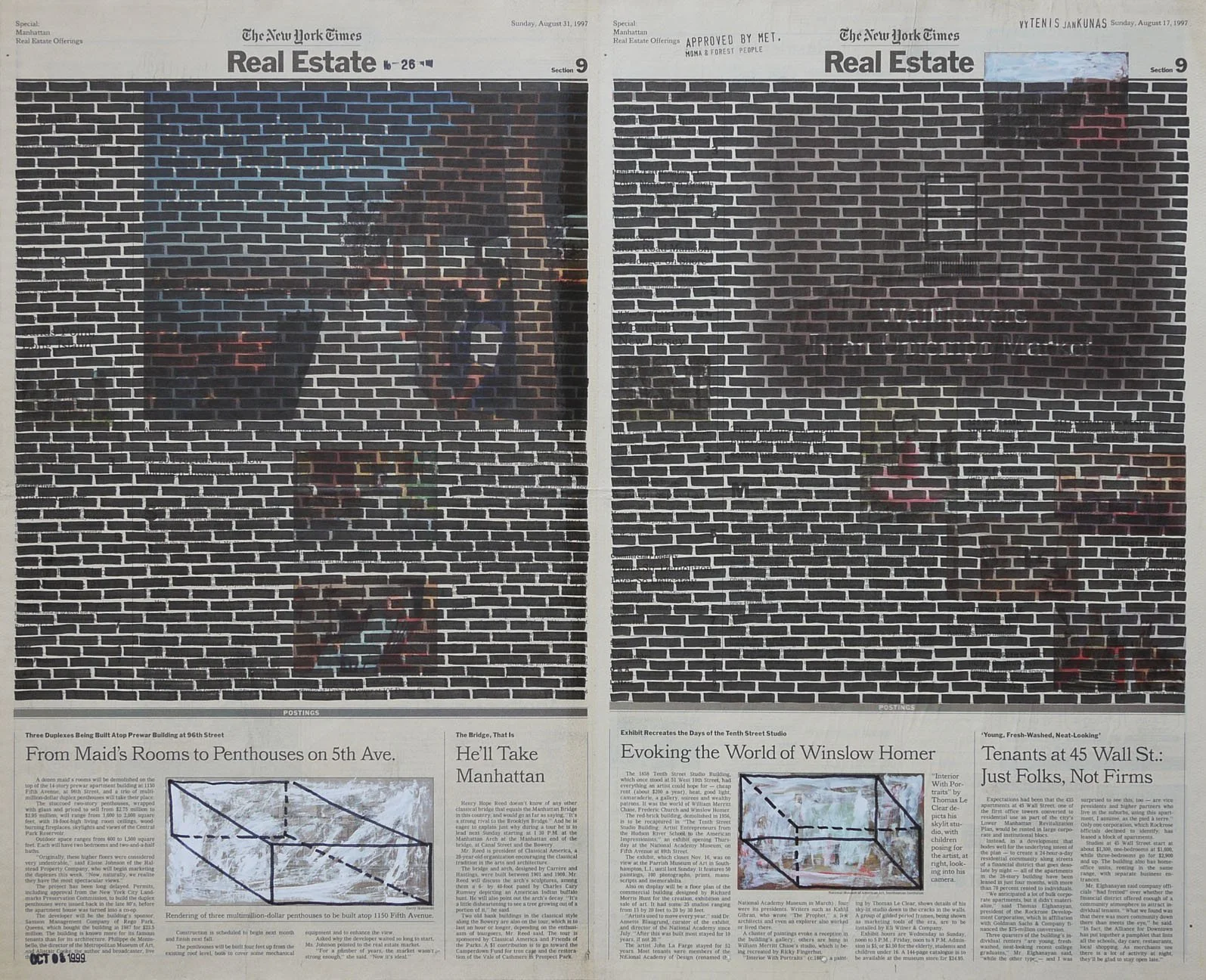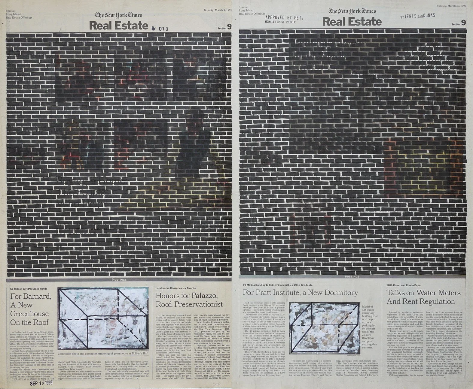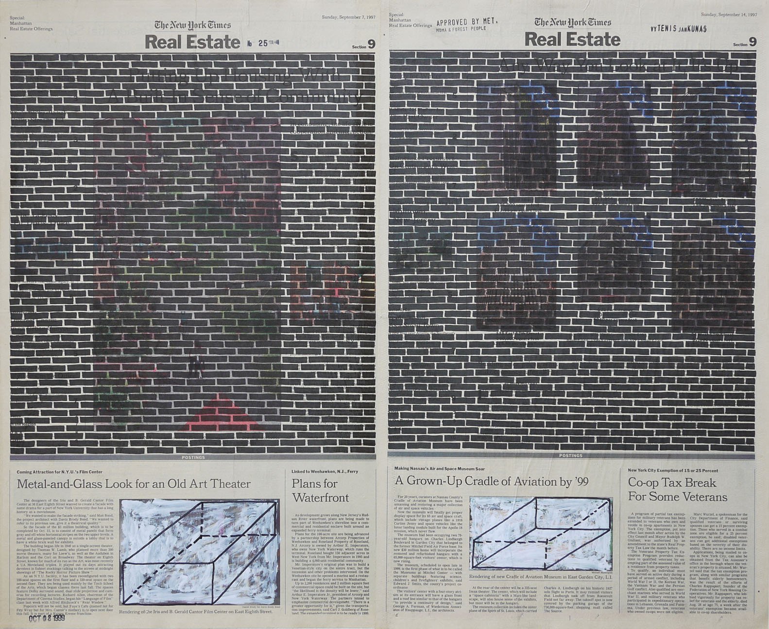 Real Estate, 1999. Permanent markers and correction fluid on newspaper mounted on canvas. It was shown at the Buying Time - Nourishing Excellence exhibition at Sotheby’s New Galleries in NYC.