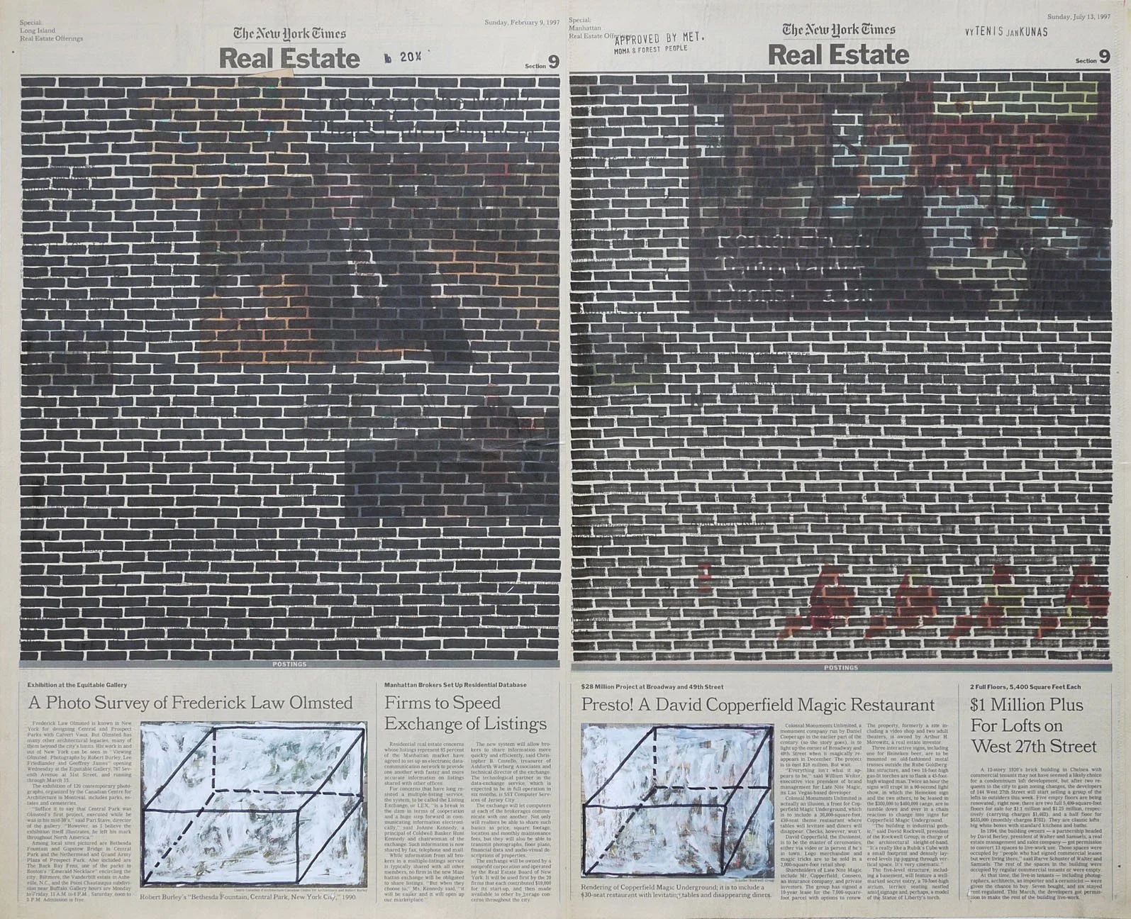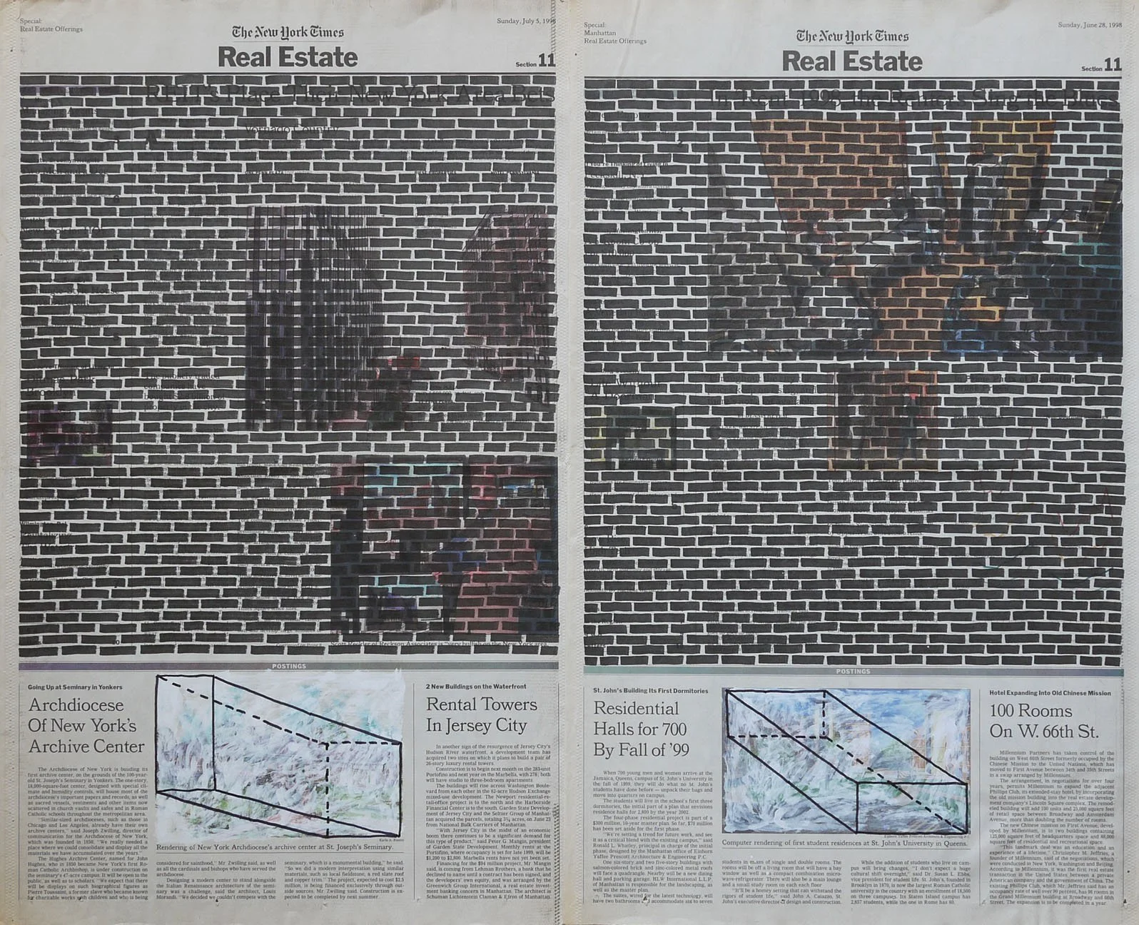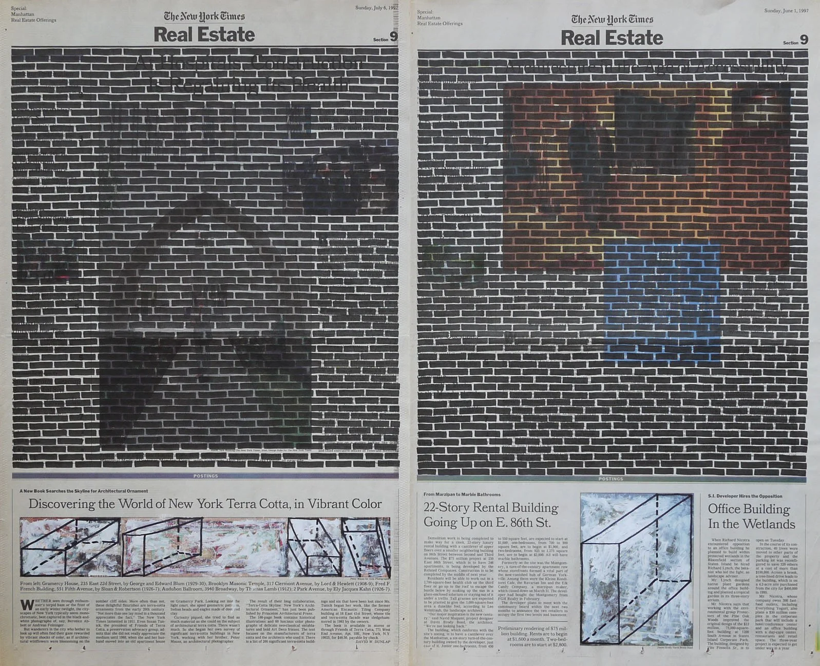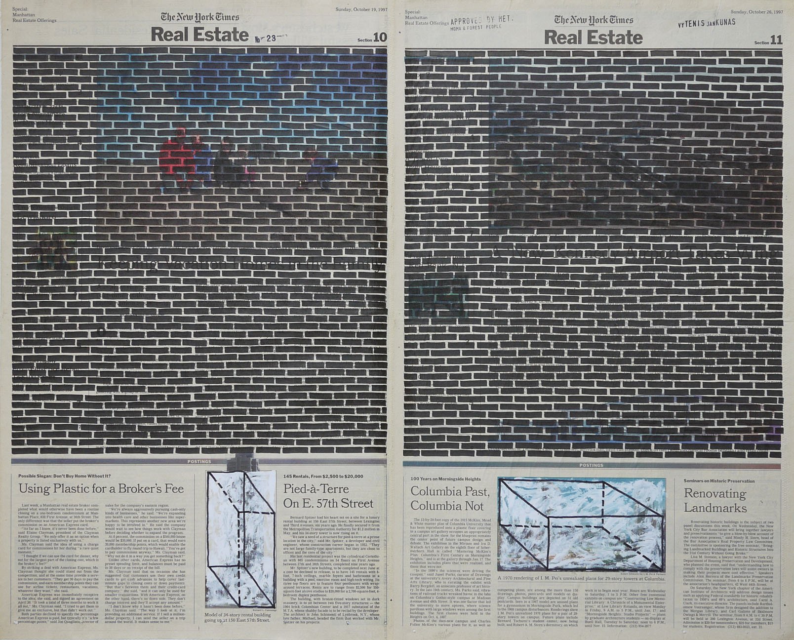 Real Estate, 1999. Permanent markers and correction fluid on newspaper mounted on canvas. It was shown at the Buying Time - Nourishing Excellence exhibition at Sotheby’s New Galleries in NYC.