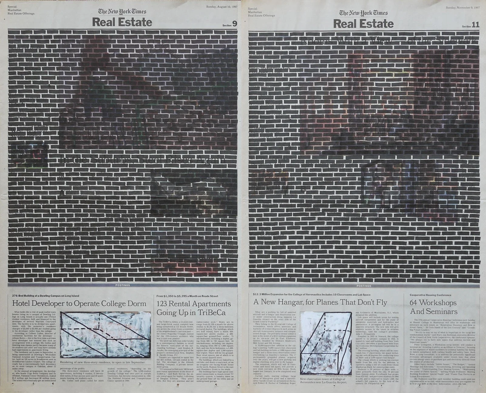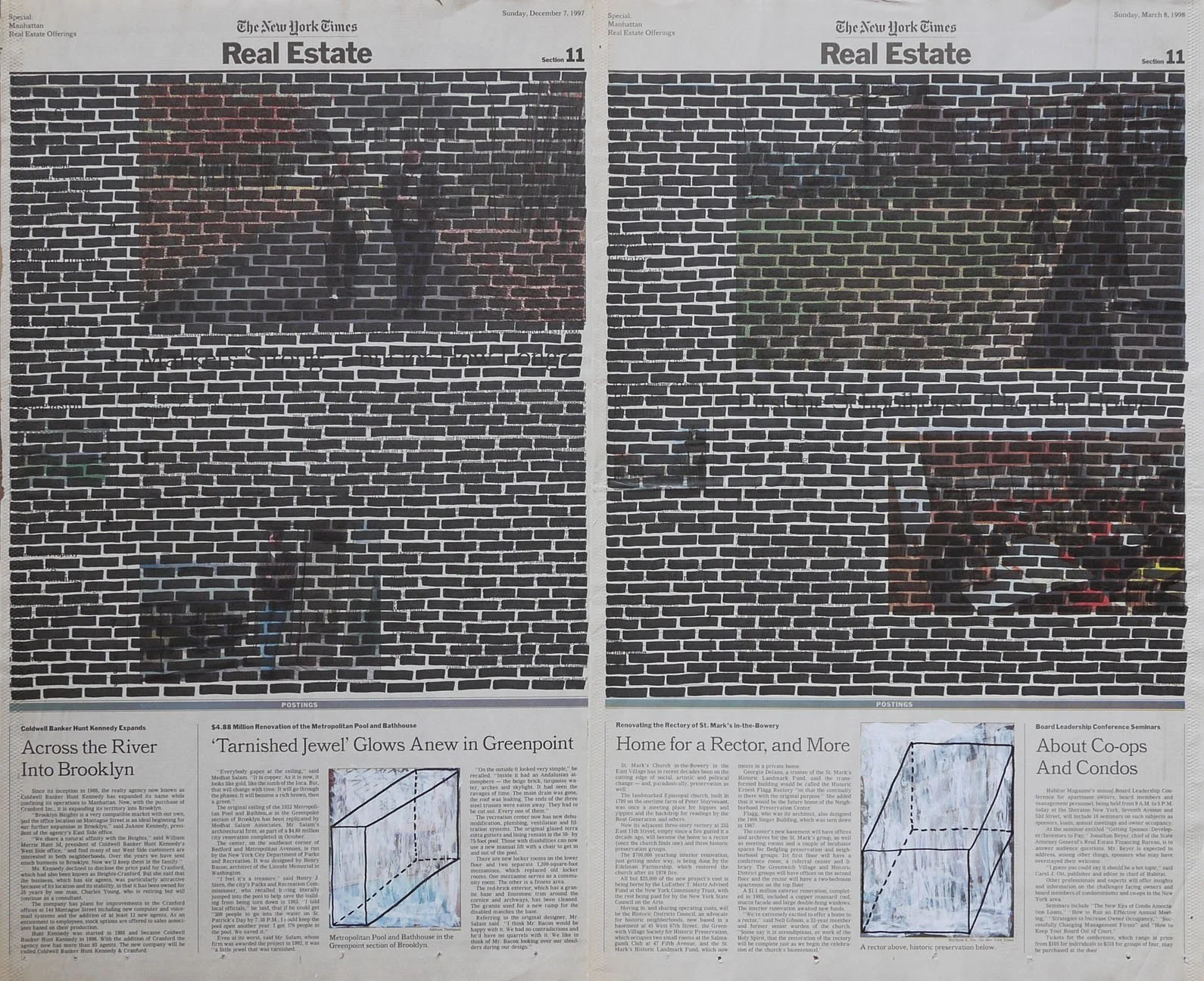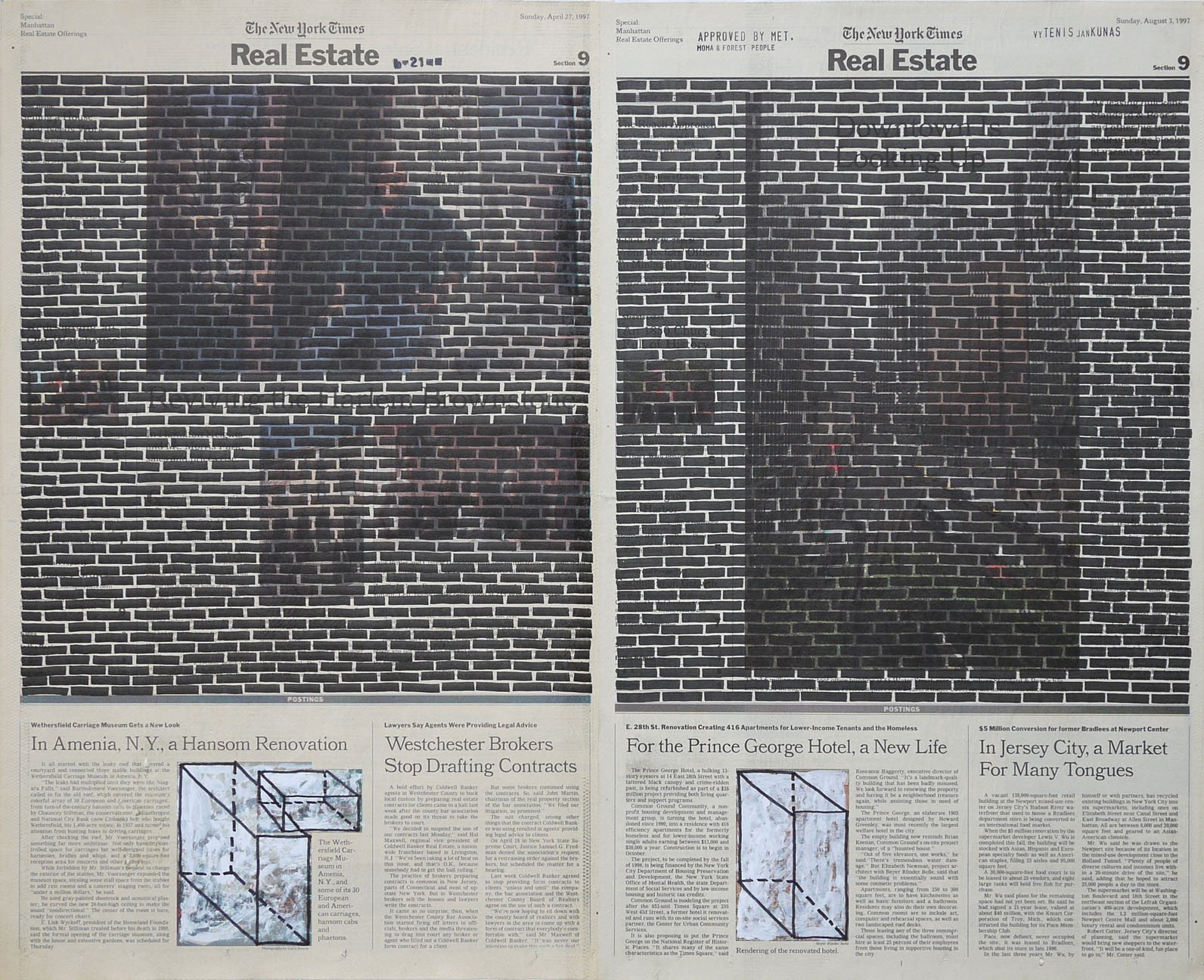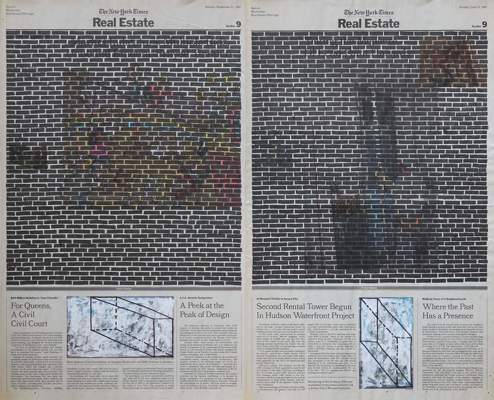 Real Estate, 1999. Permanent markers and correction fluid on newspaper mounted on canvas. It was shown at the Buying Time - Nourishing Excellence exhibition at Sotheby’s New Galleries in NYC.